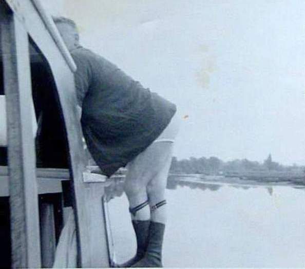 My paternal grandfather worked in the dockyard as an iron founder during the war and later with my grandma had the tenancy of pubs in Portsmouth and on the Isle of Wight. This is one of his finest hours (to my mind) on his converted lifeboat in Langstone Harbour.