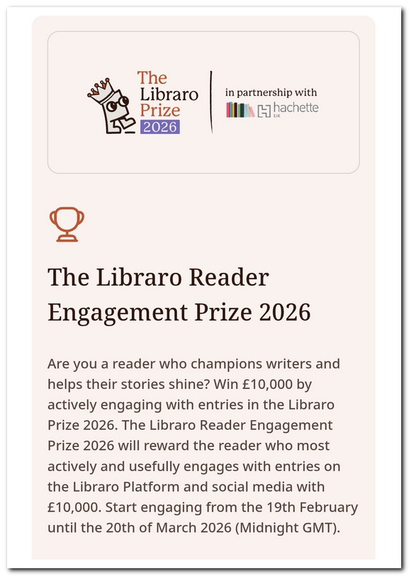 My novel ‘Nina Gander Duck or Panda’ is entered in the 2026 Libraro Prize. The shortlist is chosen by readers and you can sign up and read the first three chapters (free!), give it a thumbs-up and leave a comment/feedback if you wish. You will also be in with a chance of winning their Ā£10,000 Reader Engagement prize by doing so!